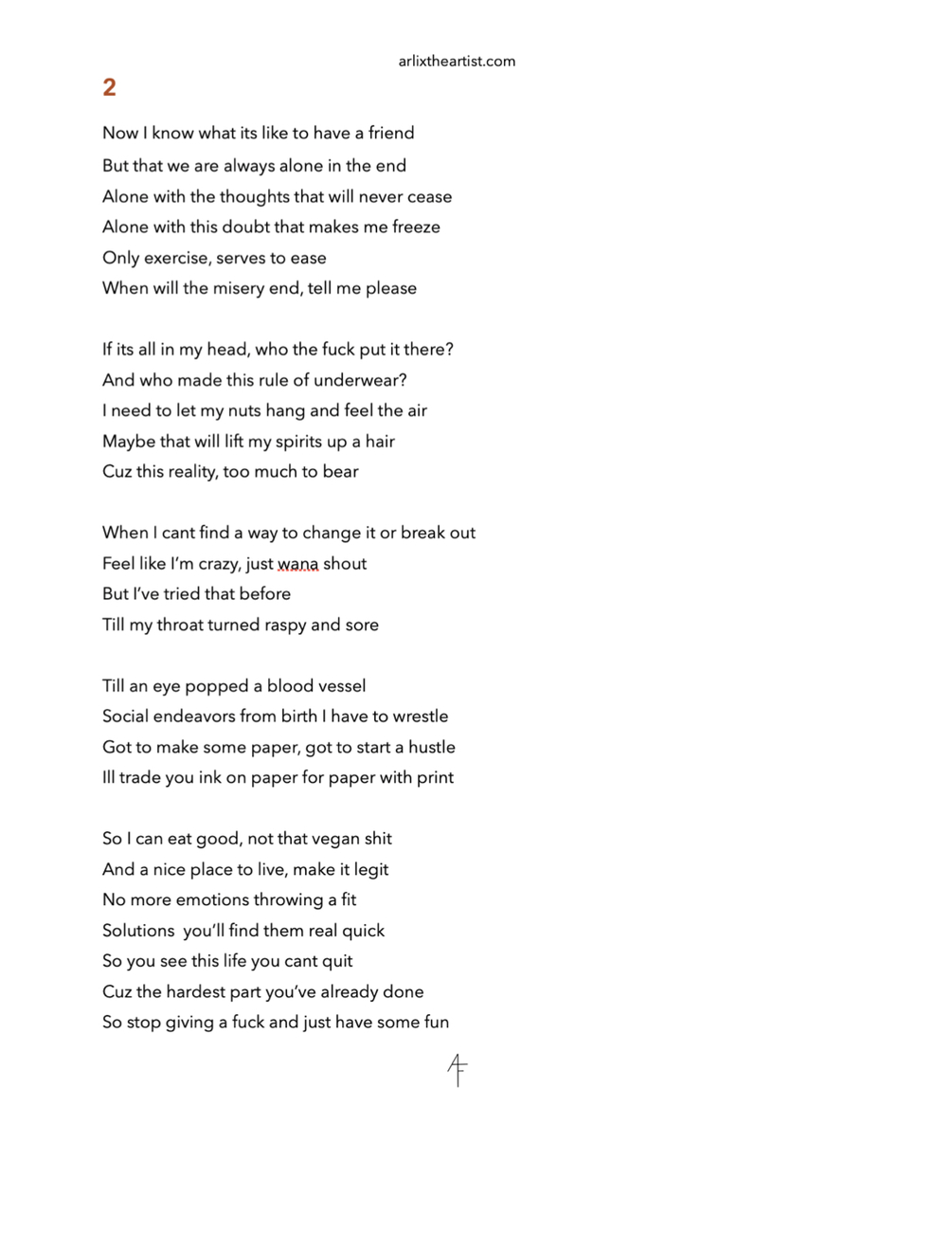 A debut collection of 22 raw, permanent verses by Arlix the Artist